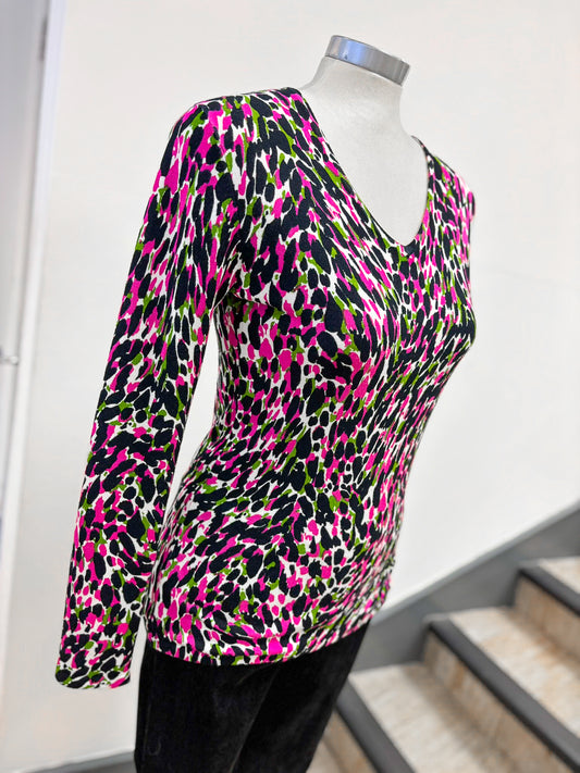 Marble Layered Speckled V-Neck Top with Cami - Green