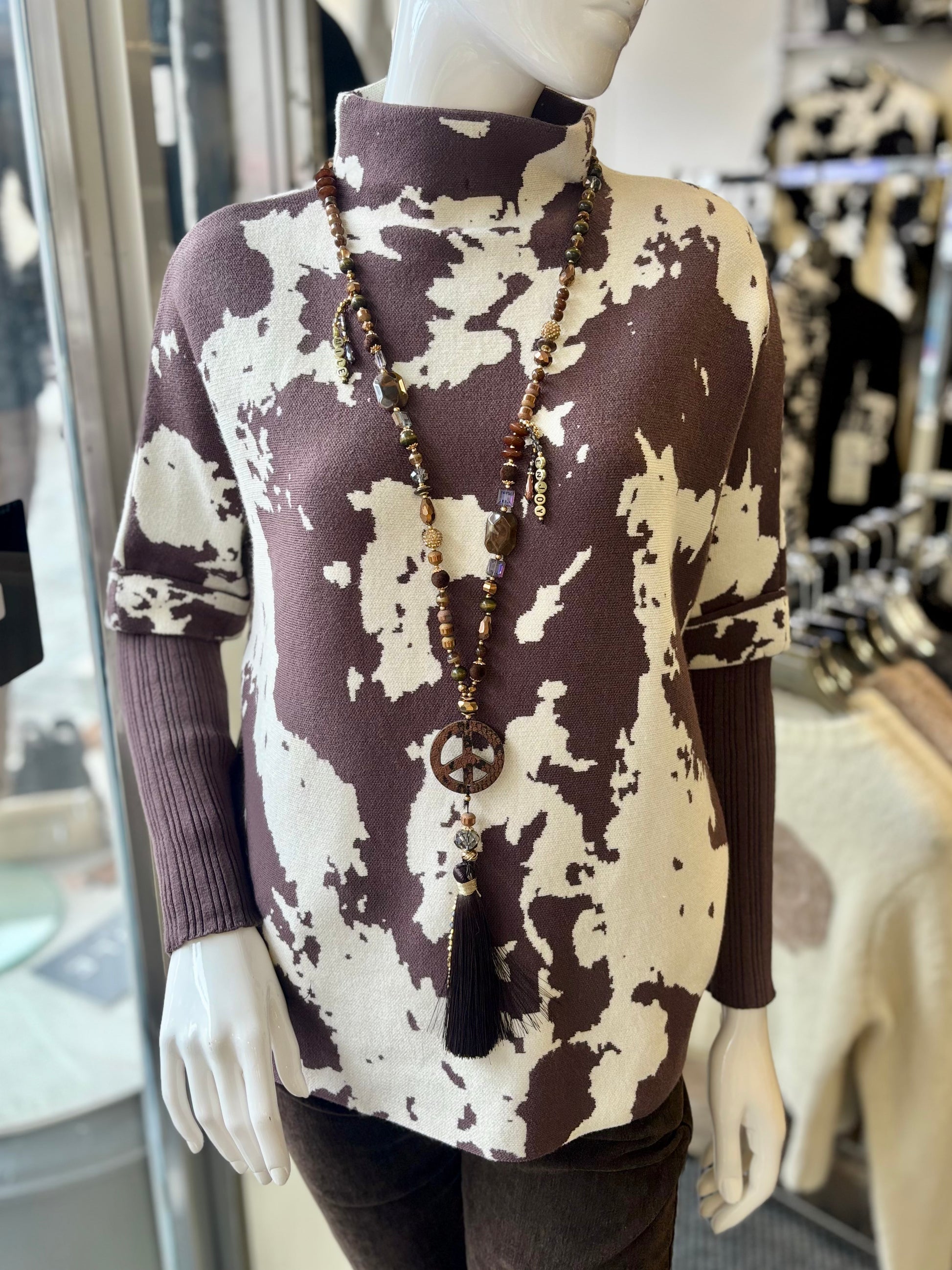High Neck Cow Print Jumper